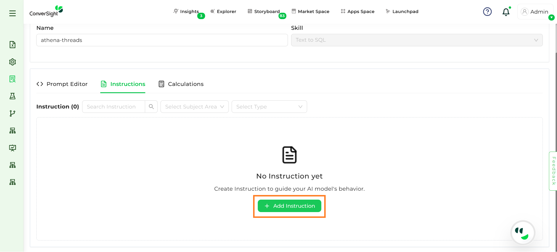 Instructions – to set domain-specific rules or guidelines that shape Athena’s responses.