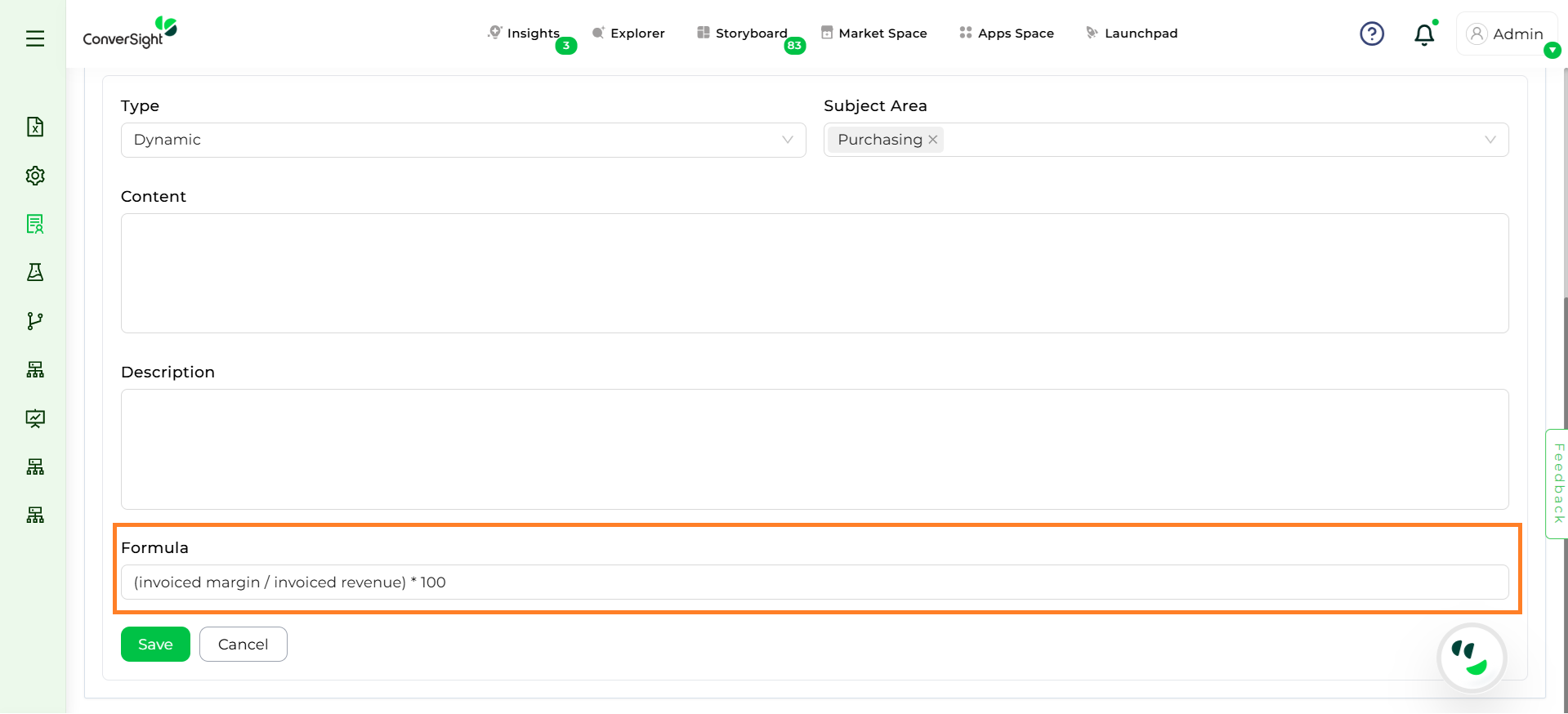 Step 5: Enter any mathematical or SQL formula (e.g., (invoiced margin / invoiced revenue) * 100