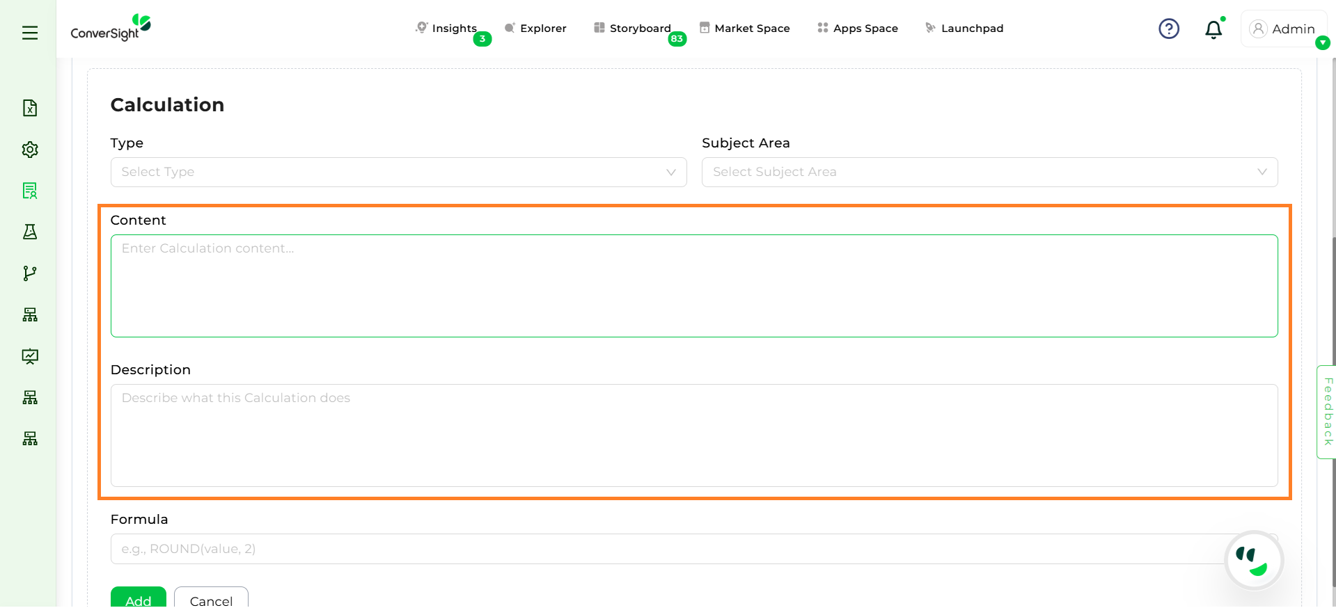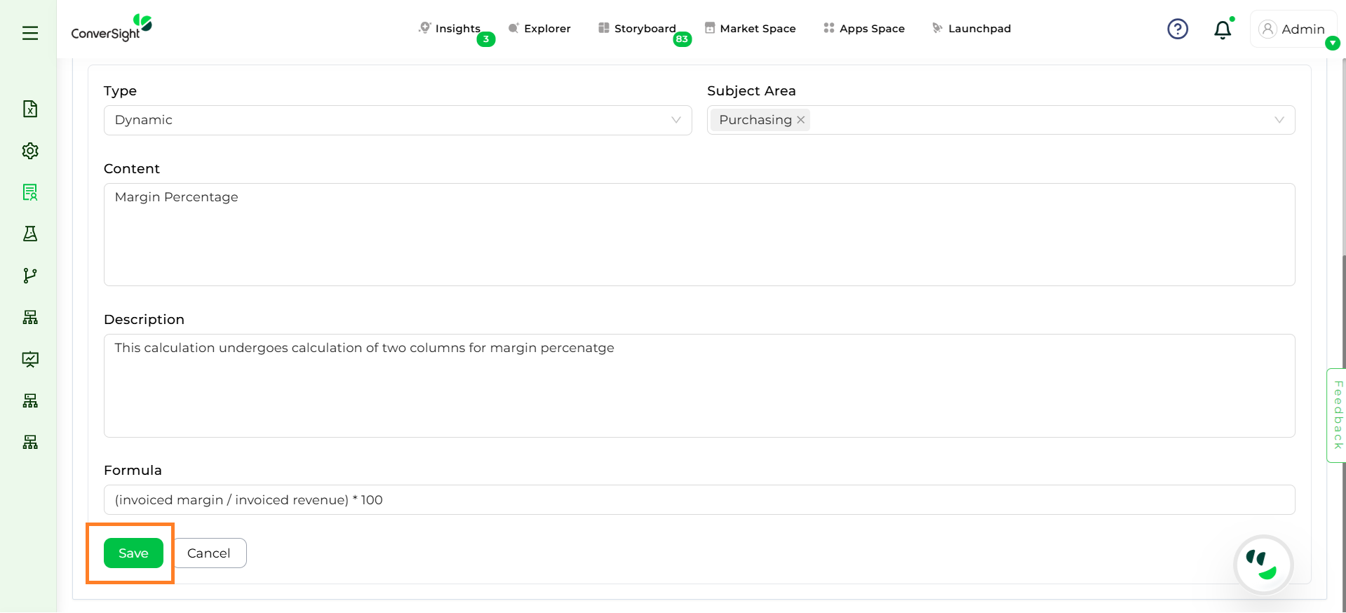 Step 4: Enter the Name and Description for the calculation (e.g., Margin Percentage).