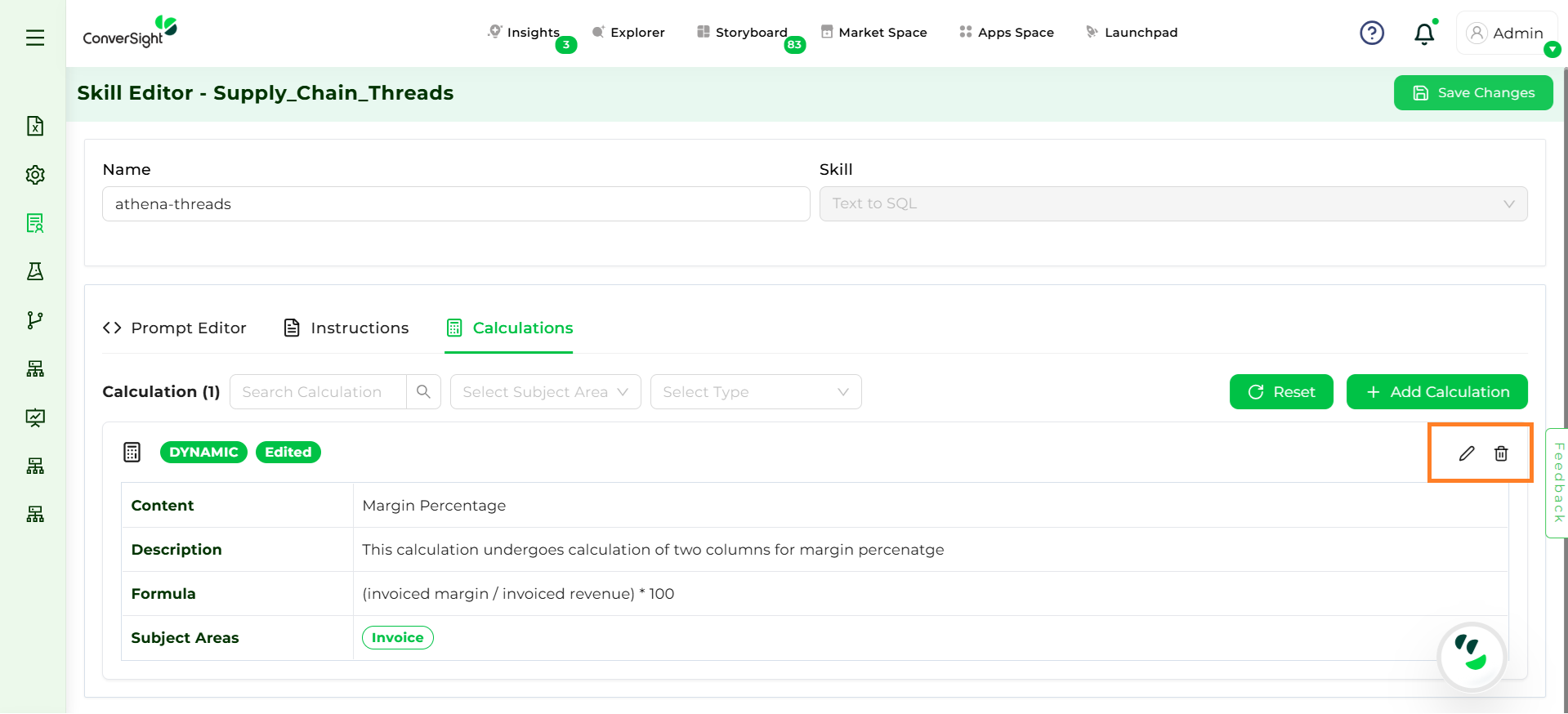 Step 7: Users can Edit or Delete the added calculations.