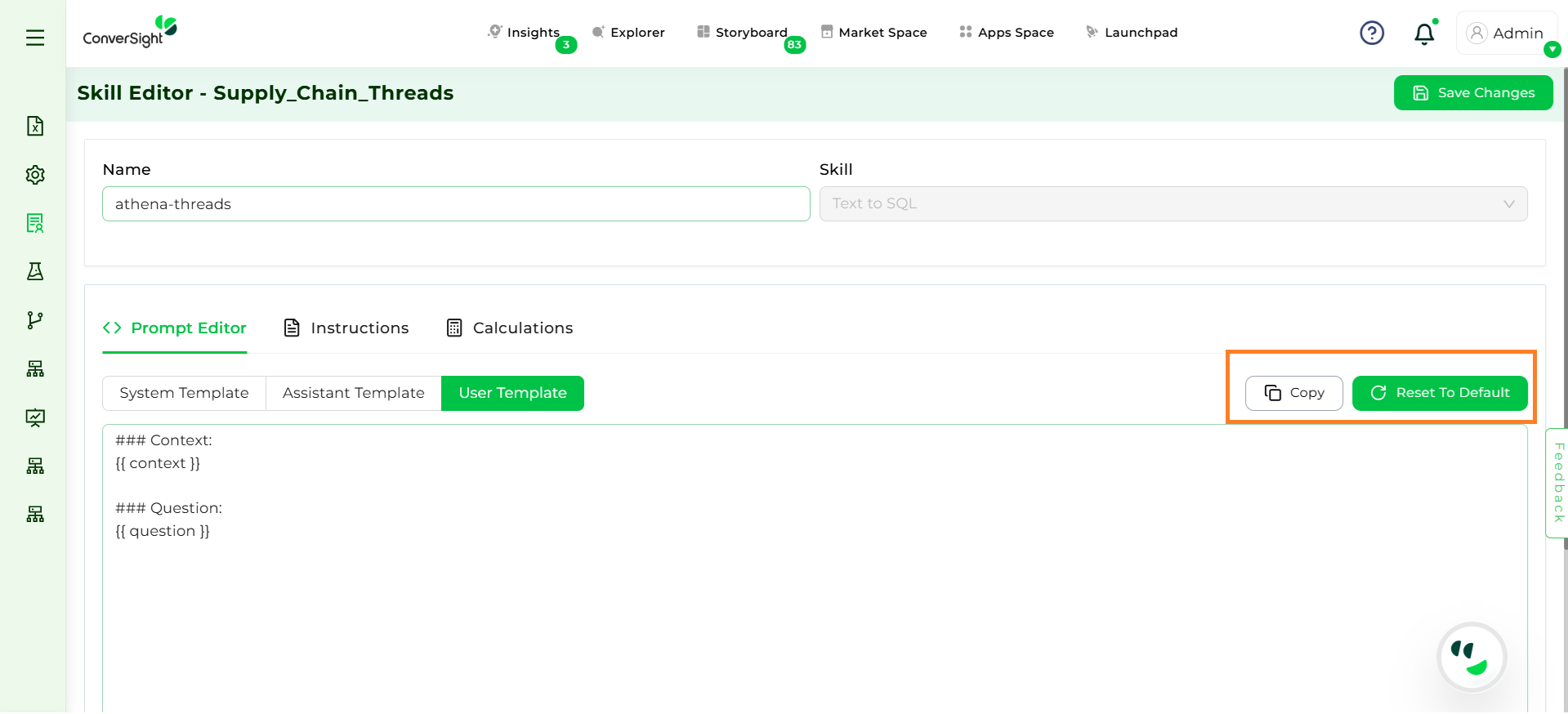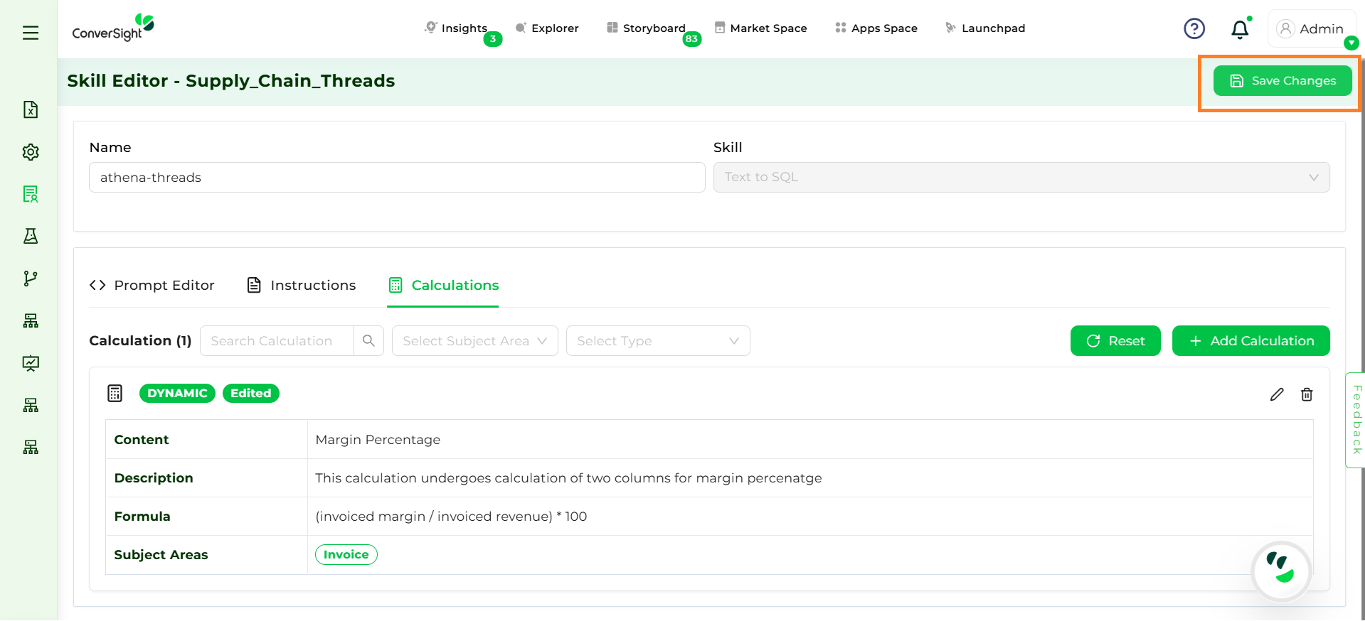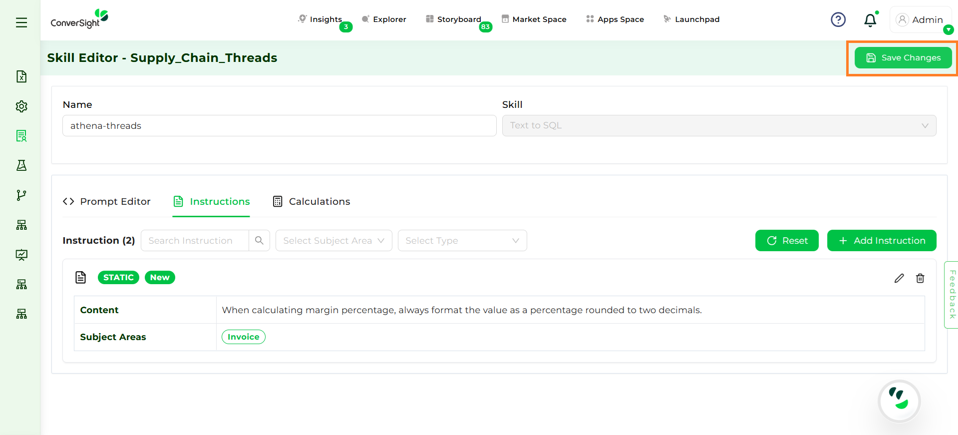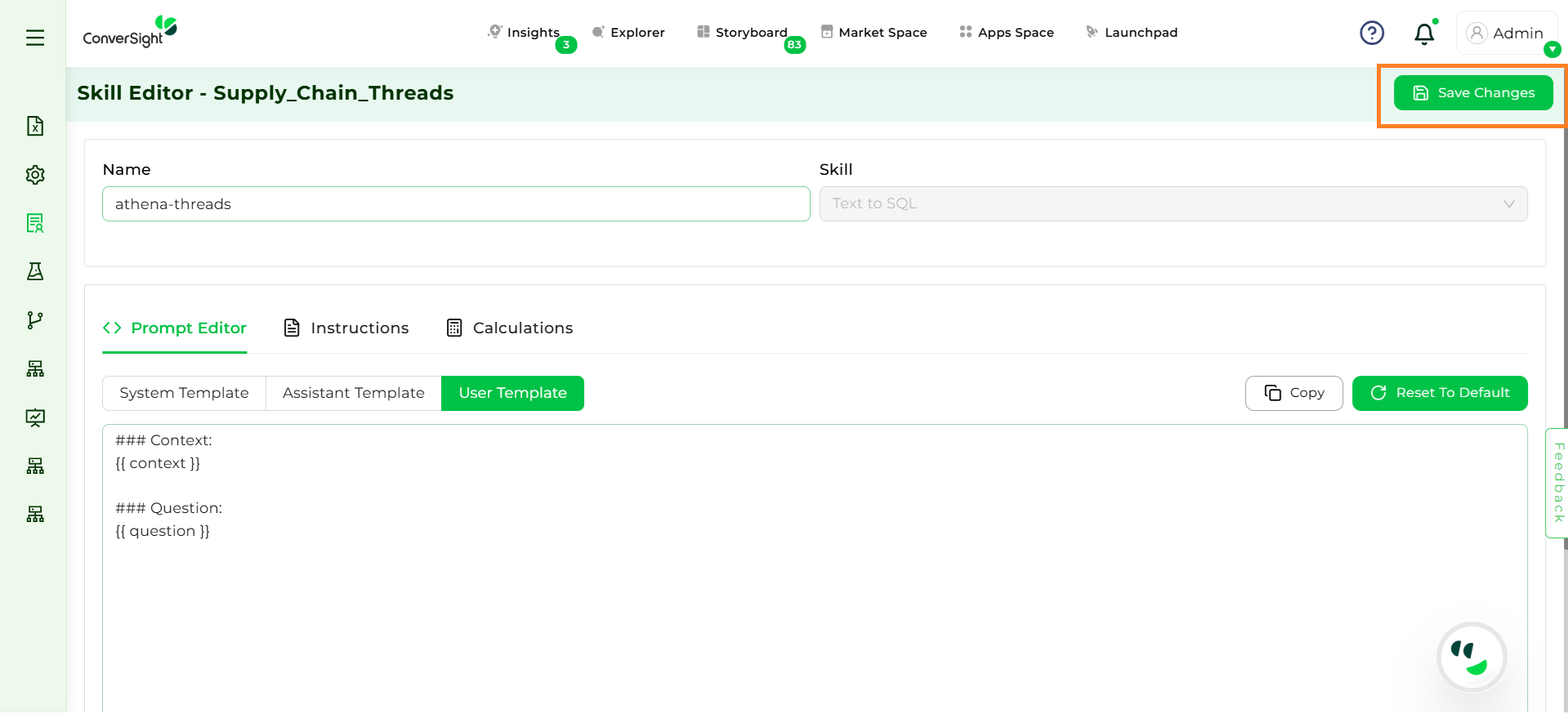 After updating prompts, it is important to save the changes by clicking on Save Changes. Saving ensures that all configurations are stored at the dataset level and reflected across subject areas.