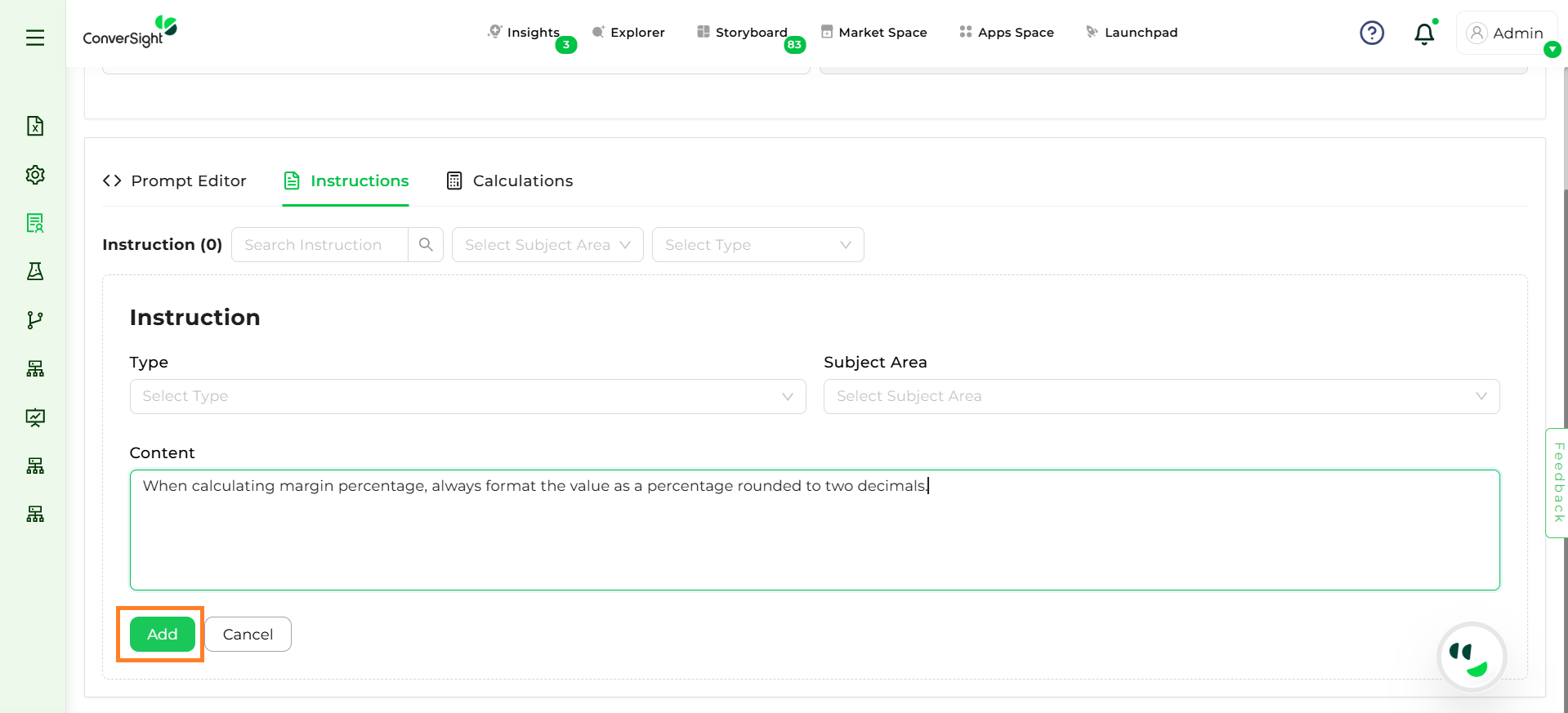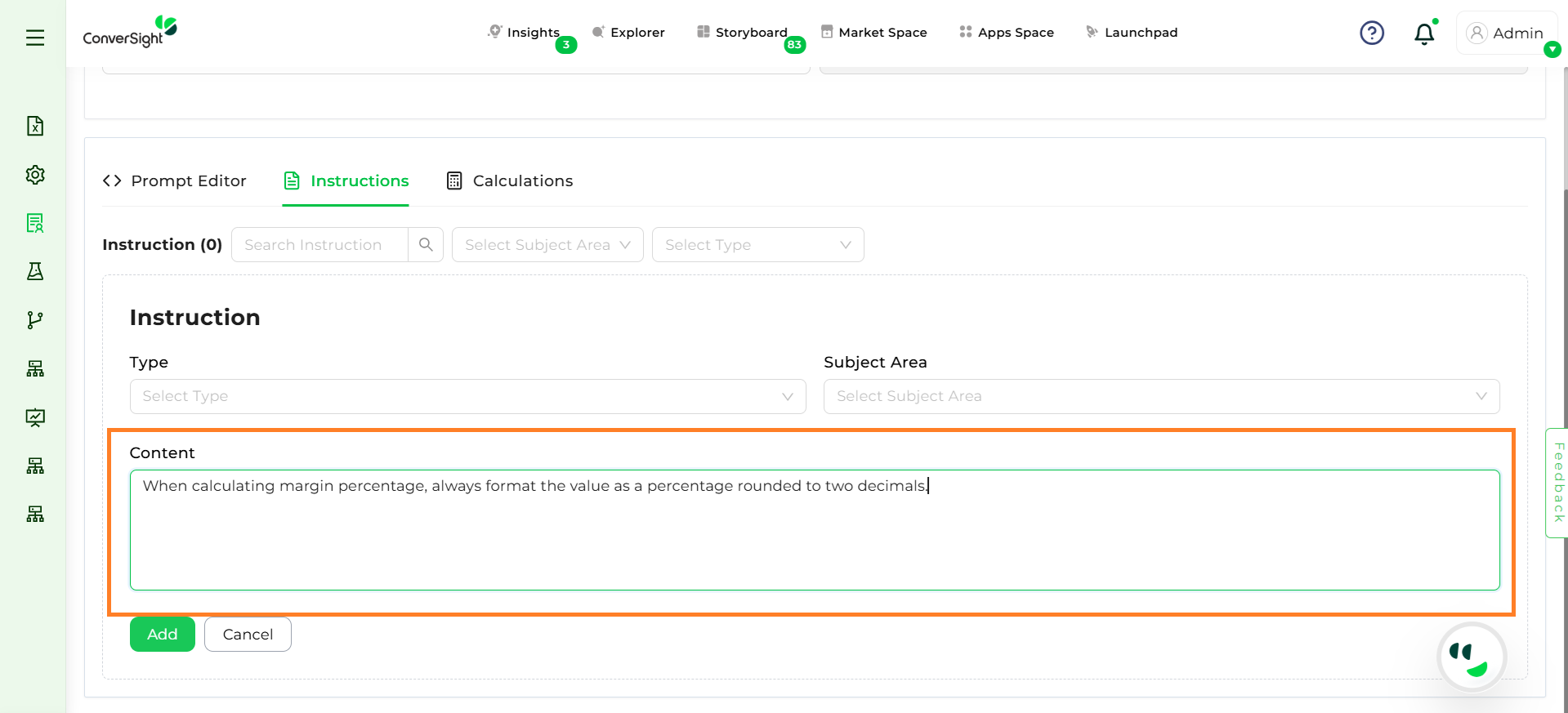 Step 4: Enter the actual instruction or guideline (e.g., calculation rule, formula, synonym mapping).