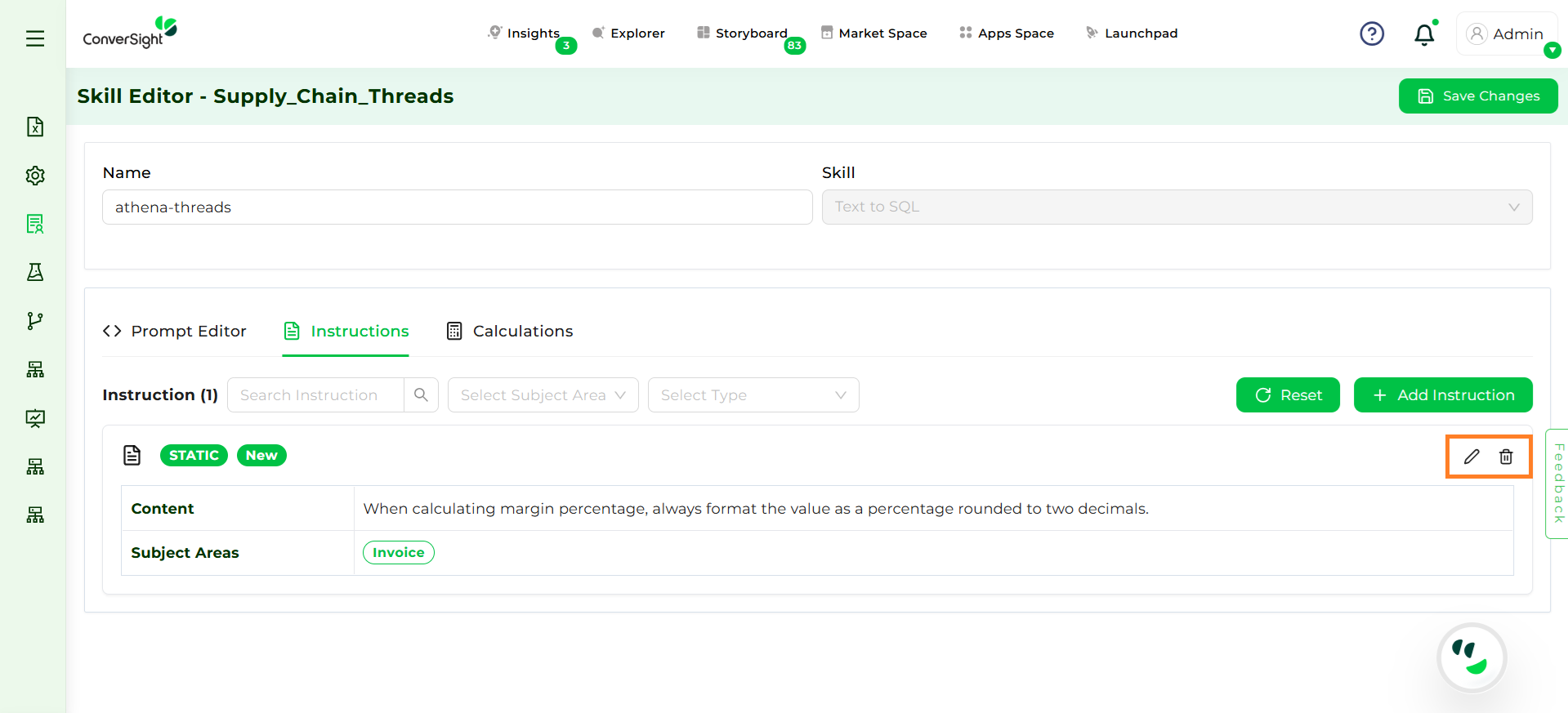 Modifying prompts, instructions, or calculations in the Skill Editor directly impacts how Athena interprets and responds to queries. Incorrect or overly broad changes may lead to unexpected outputs or hallucinations.