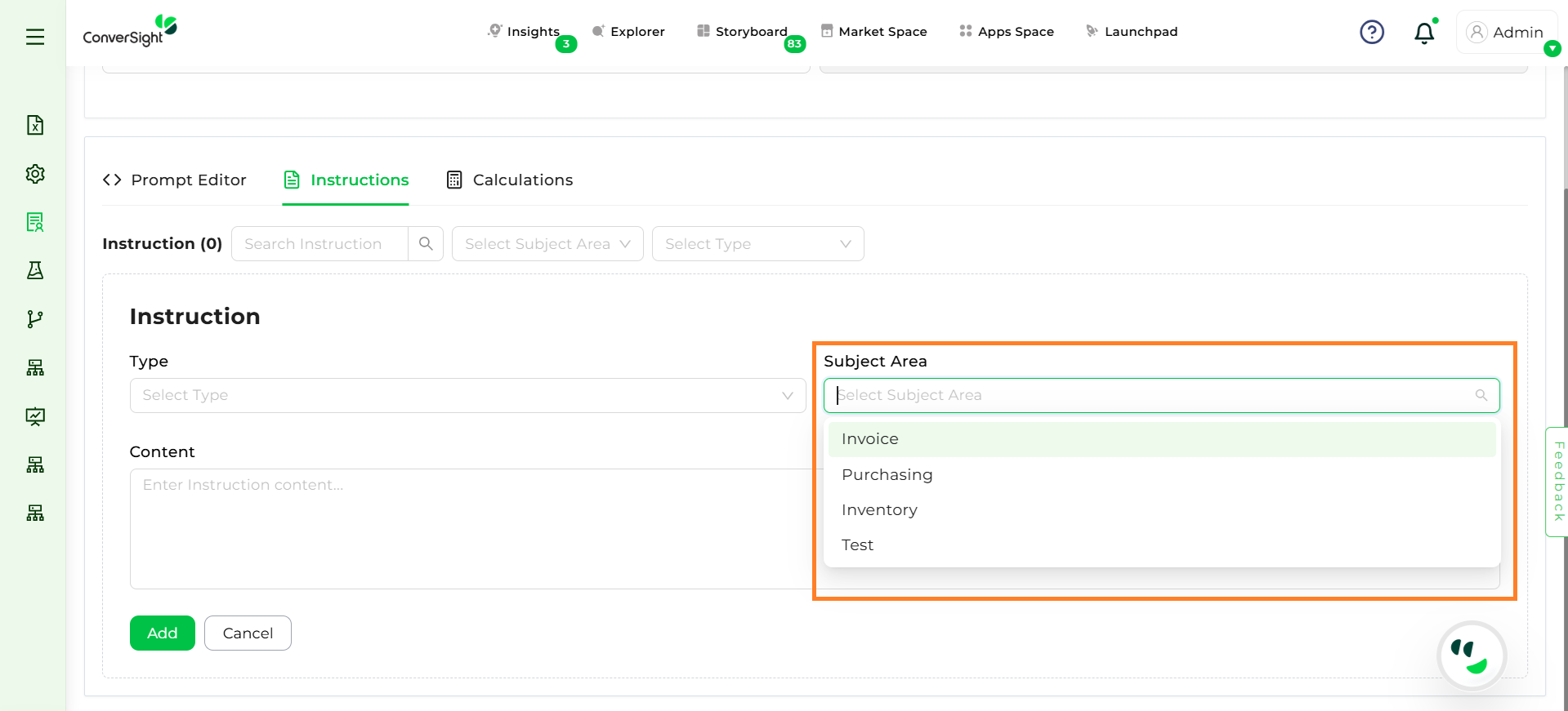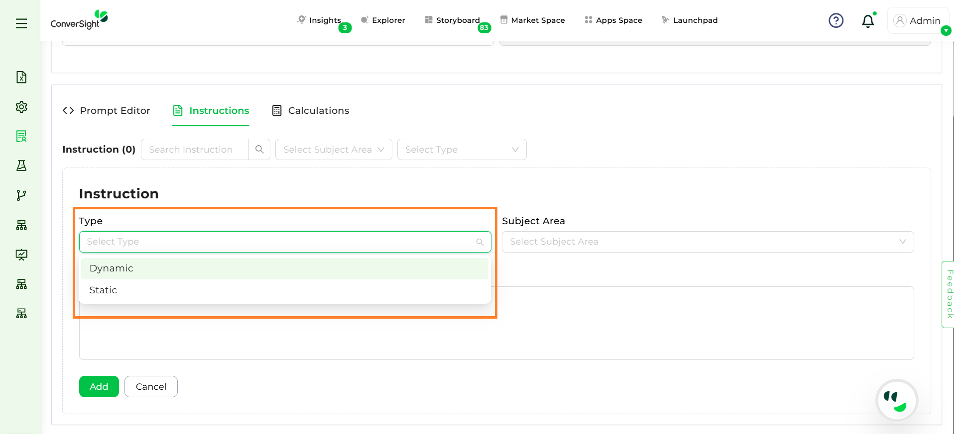 Step 2: Select Static or Dynamic instruction depending on whether it should apply universally or contextually. Static Instructions are applied to all queries, regardless of context, whereas Dynamic Instructions are applied only when relevant to a specific subject area or query context.