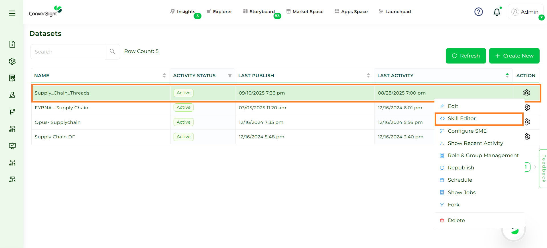 Step 2: Select the Dataset for which you want to configure the Skill Editor.