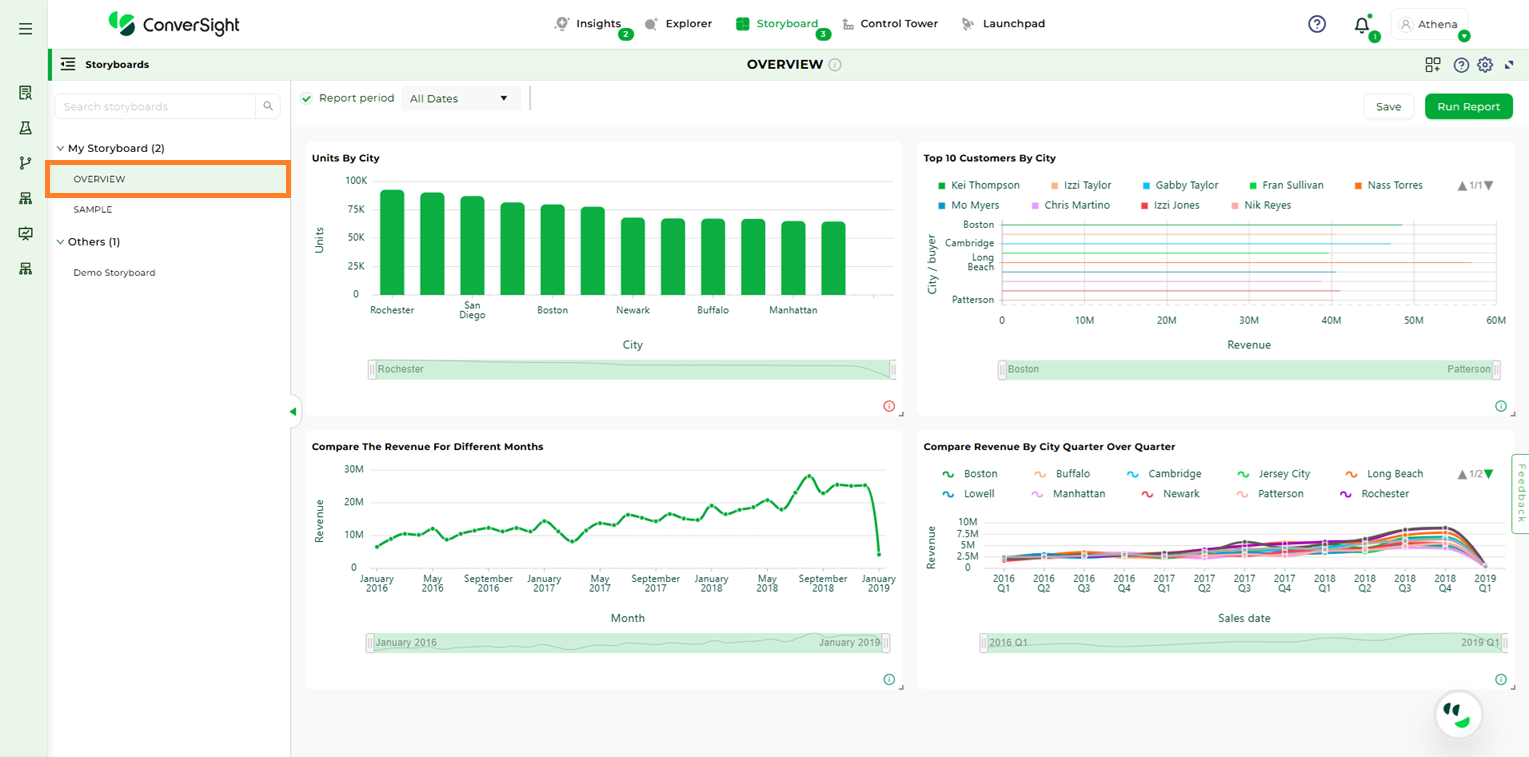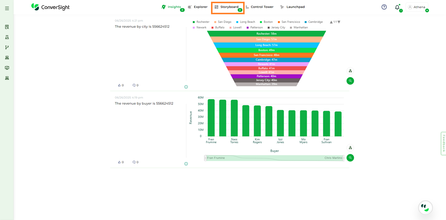 To navigate to Storyboard tab, Click on Storyboard in the ConverSight platform.