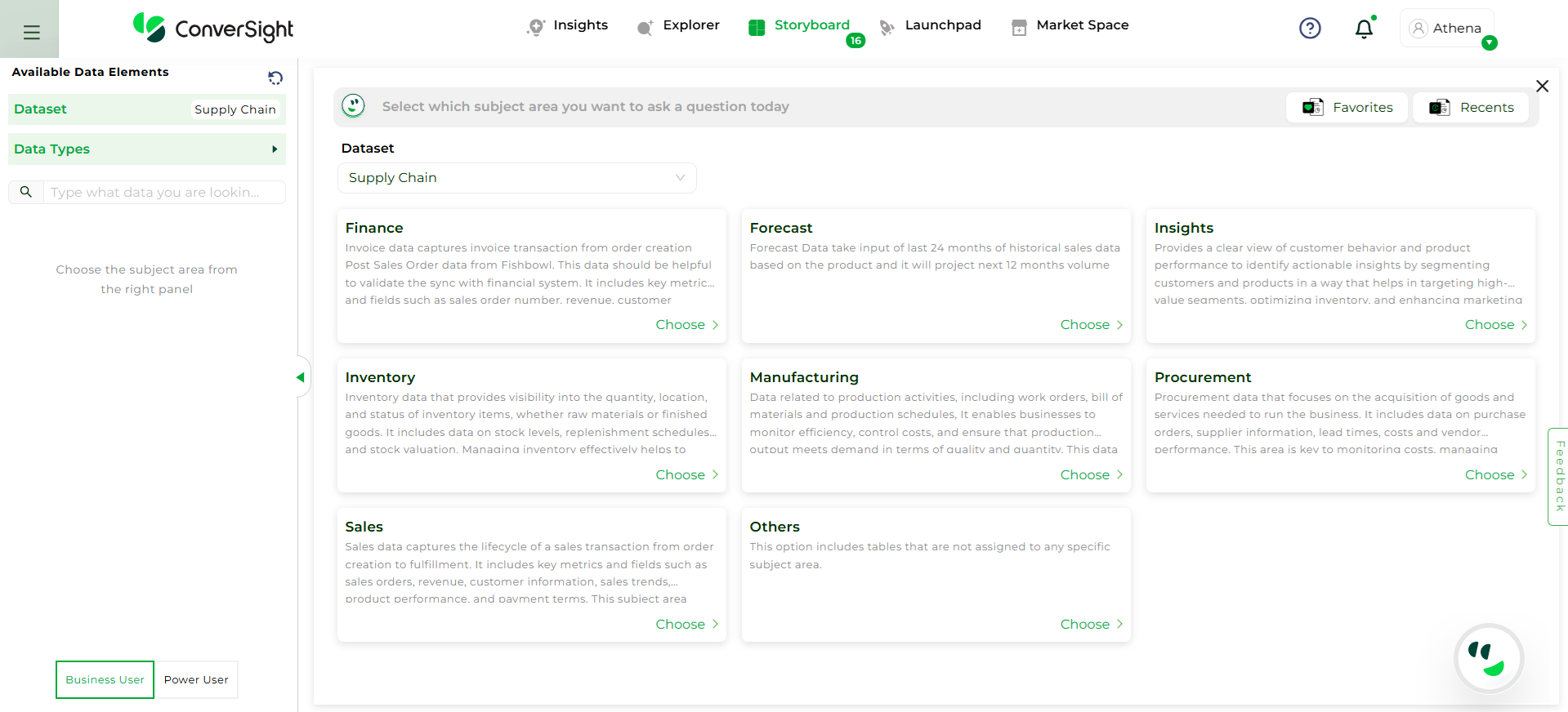 To view the storyboards under a specific Business Area, simply click on the Business Area name to expand it. This helps you quickly find and access the relevant storyboards without having to search through everything manually.