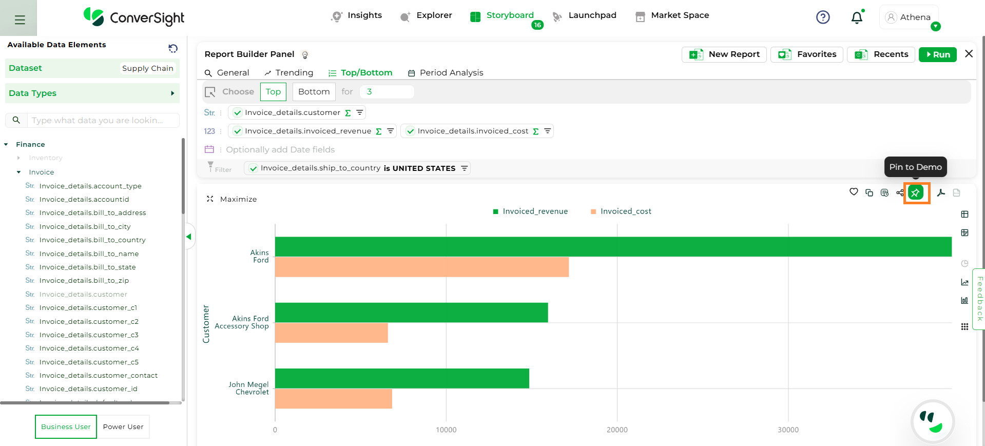 Step 6: Once the query is generated, click Pin to add it to your storyboard for organized viewing.