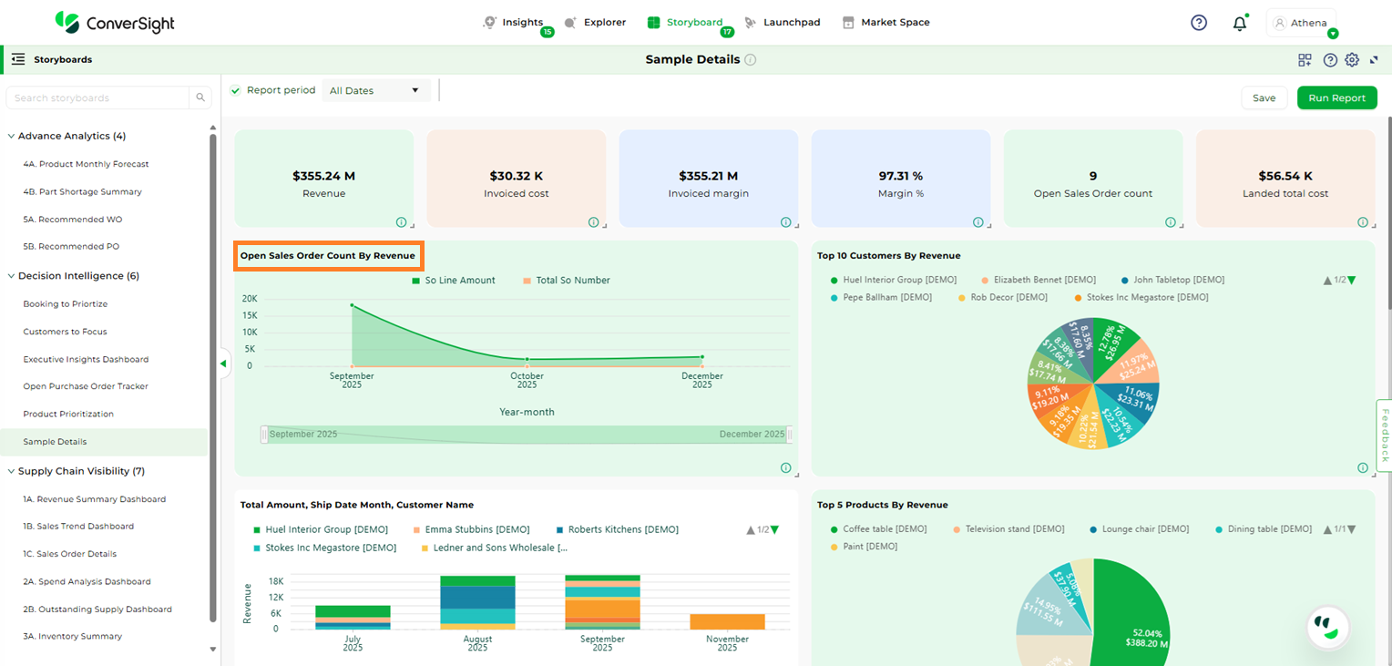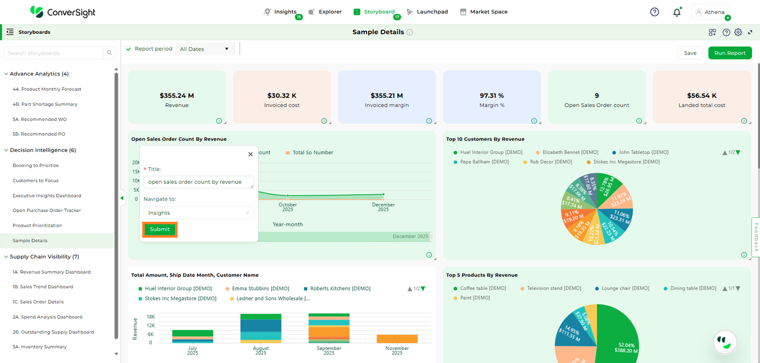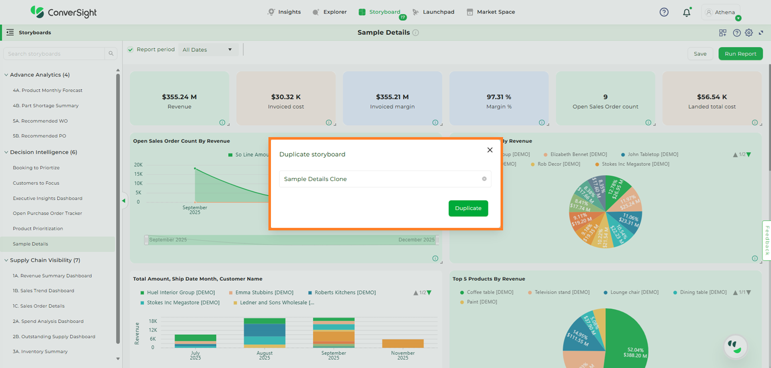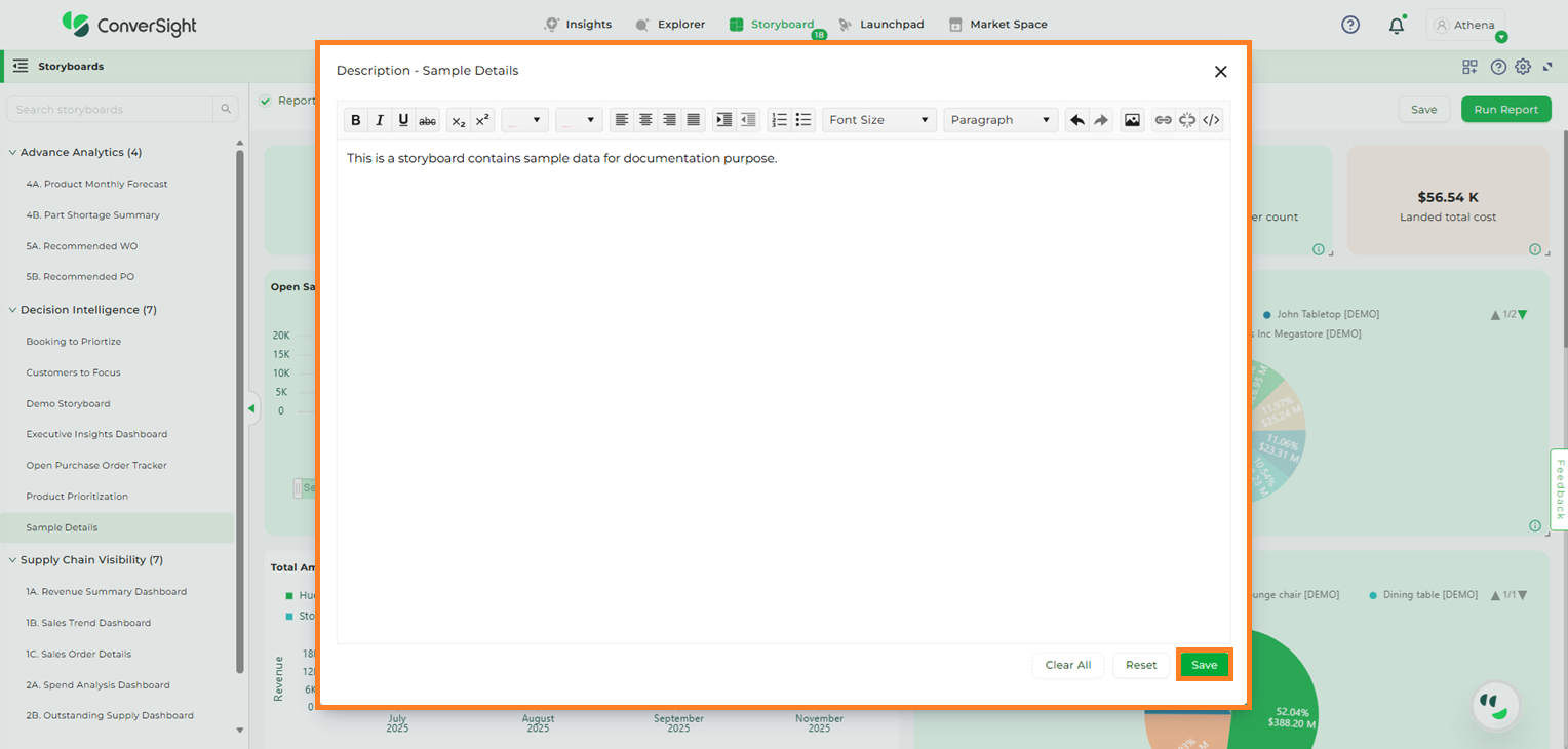In conclusion, a Storyboard is your personalized canvas for data visualization and organization. It empowers you to effortlessly compile, access and showcase your charts, graphs and insights in a single, cohesive space. In a world inundated with data, Storyboards offer clarity and convenience, ensuring that your most critical insights are always at your fingertips, ready to inform and guide your decisions.