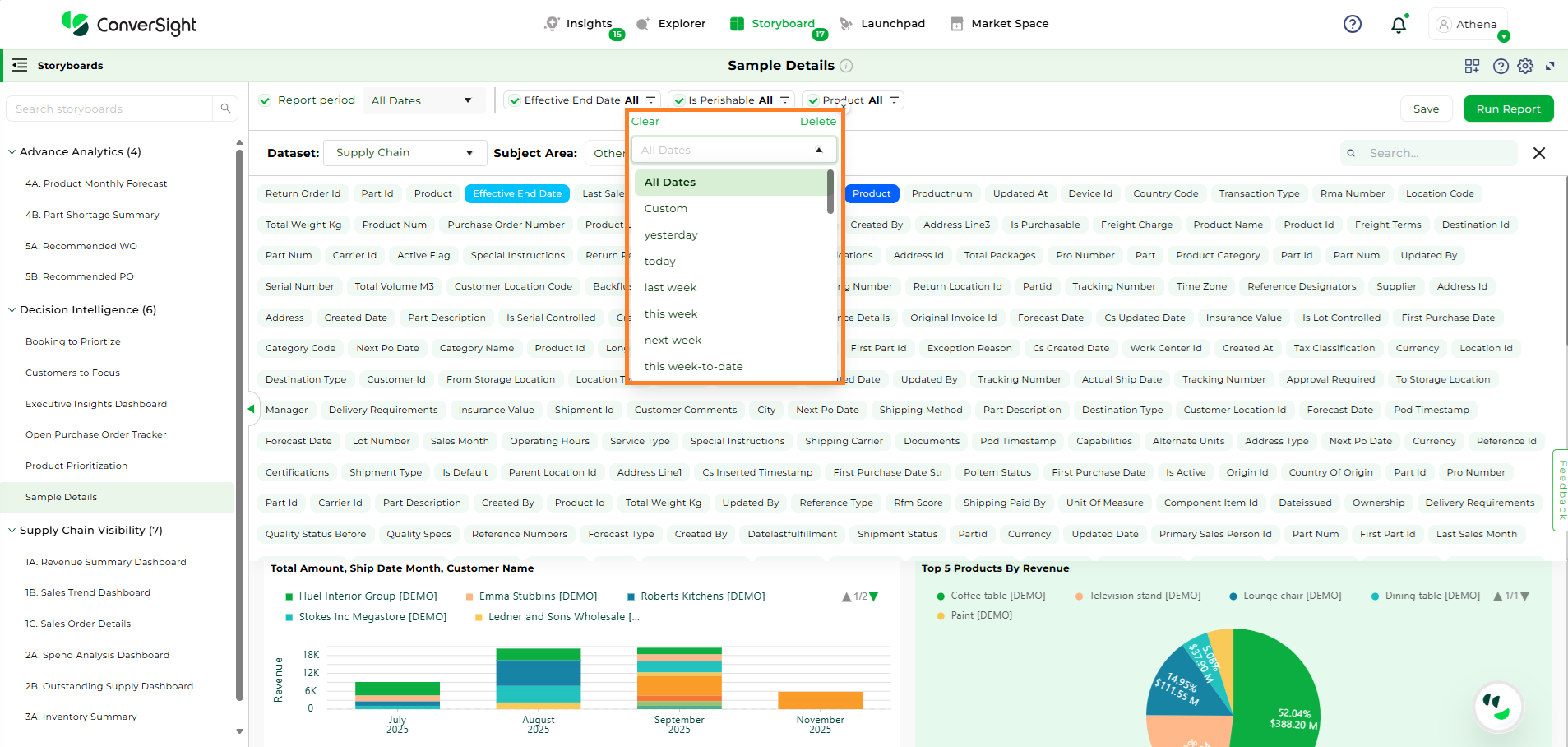 The Report period feature is a handy way to filter data based on specific dates.