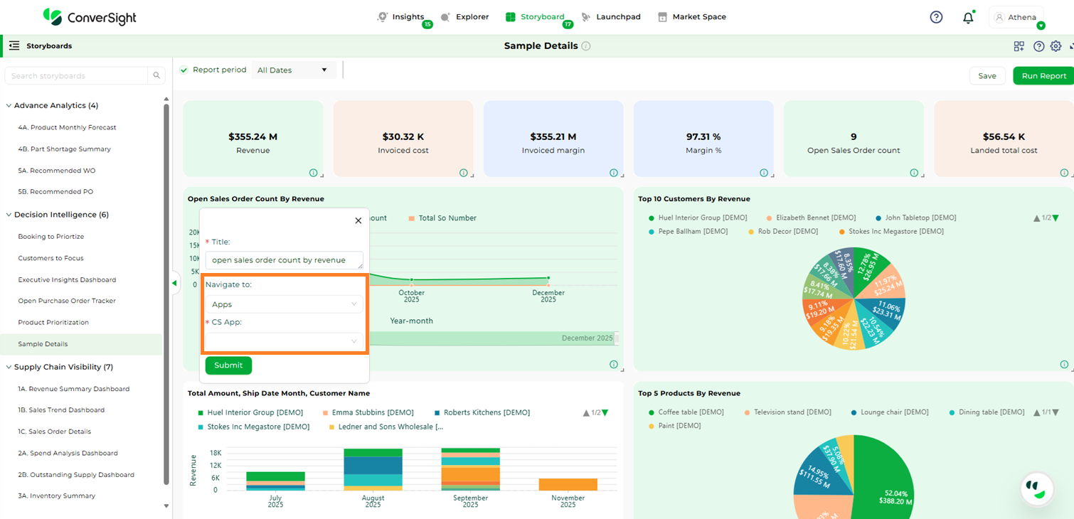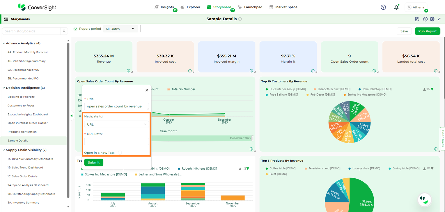Step 4: In the Navigation to dropdown, choose your Storyboard’s redirection destination which are Apps, Insights, Storyboard or URL.