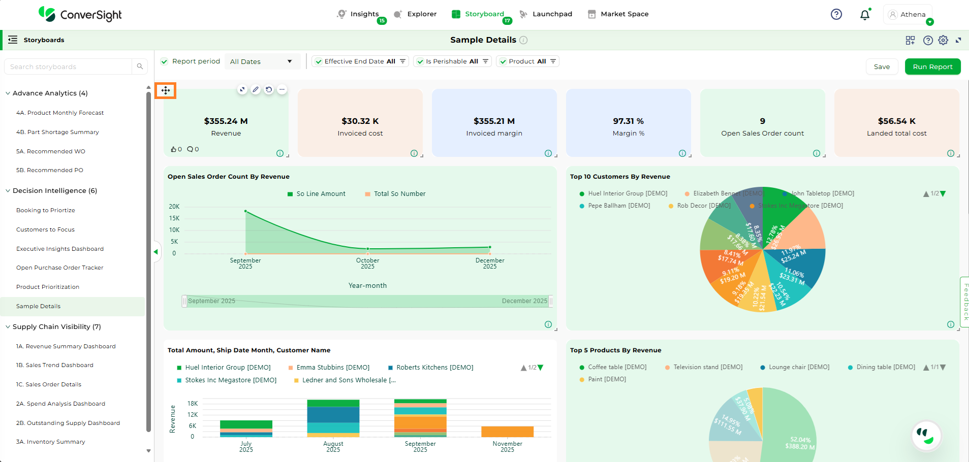 To organize the insights within the storyboard, Click and Drag each insight to your desired position. This allows you to customize the layout to better suit your needs.