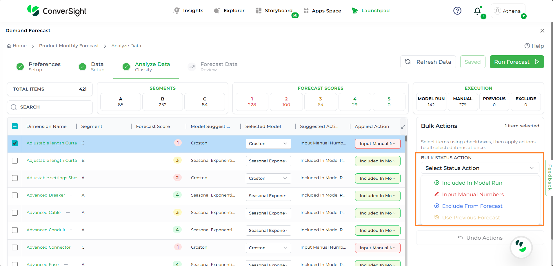 Once the analysis is saved, click on the Run Forecast button to initiate the forecasting process based on the current data setup and applied actions.