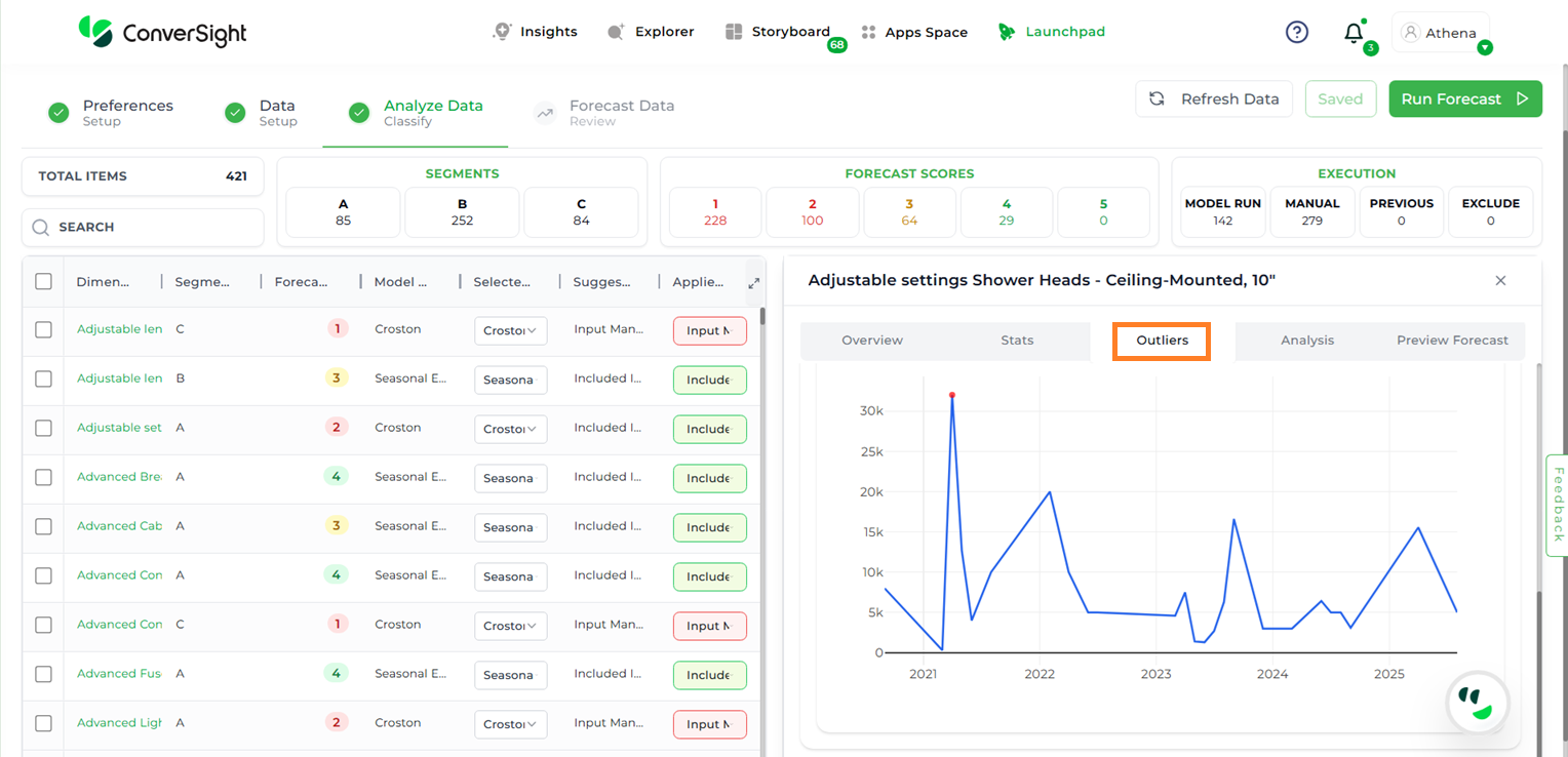 Outlier Imputation – Allows users to handle abnormal or extreme values in the dataset that could impact forecast accuracy.
