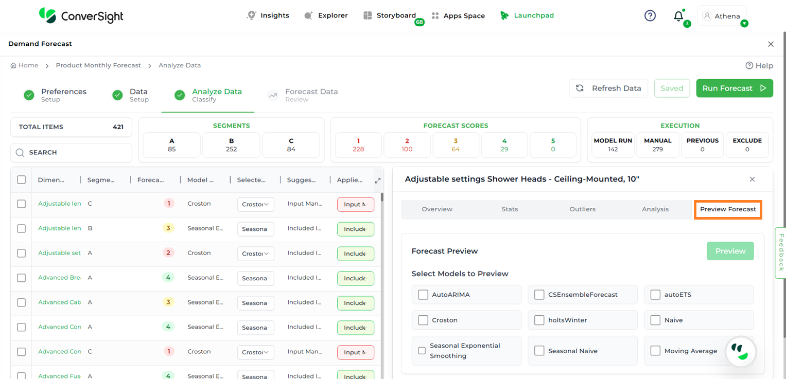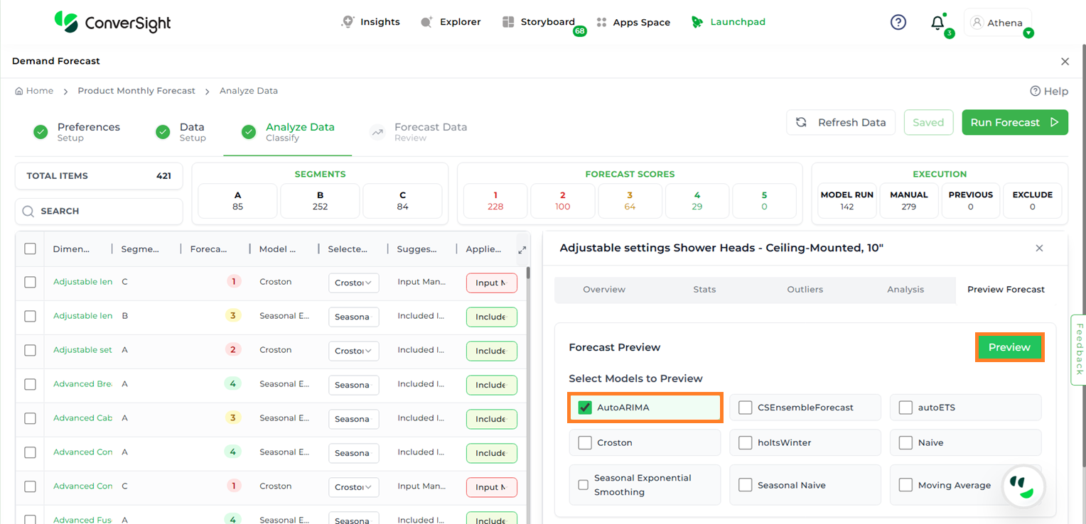 After selecting the desired item, click on the Preview Forecast tab. A list of all available models will appear.