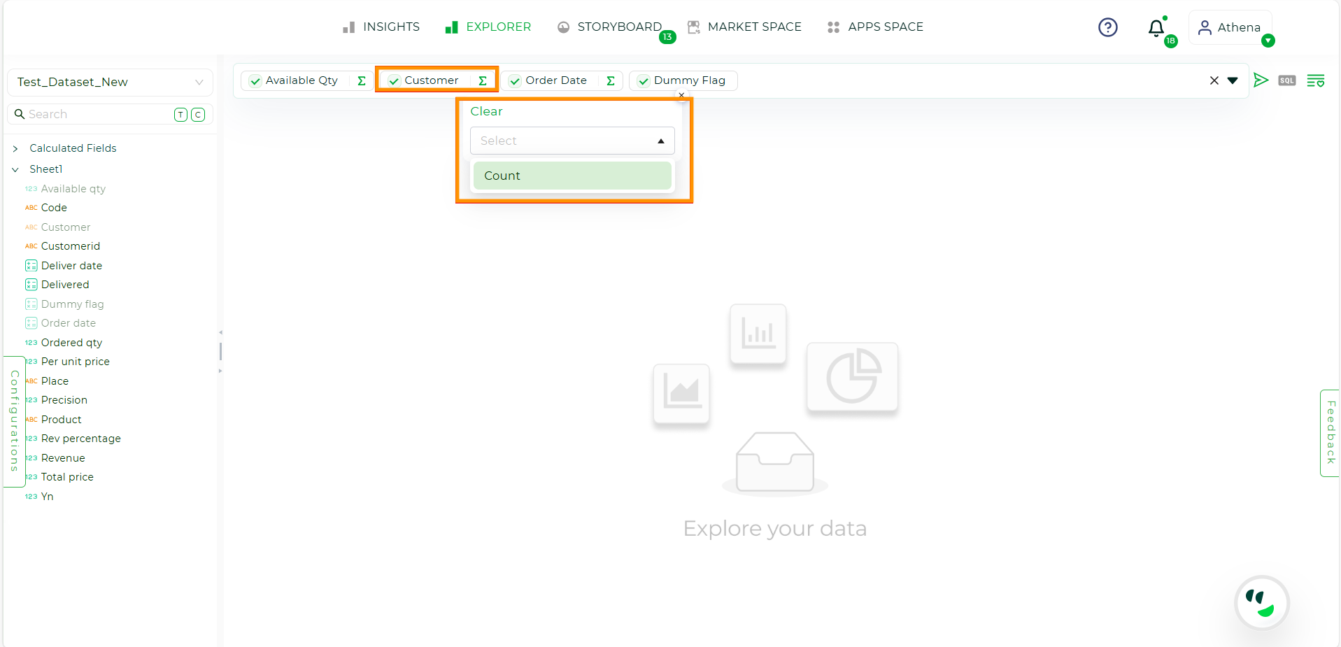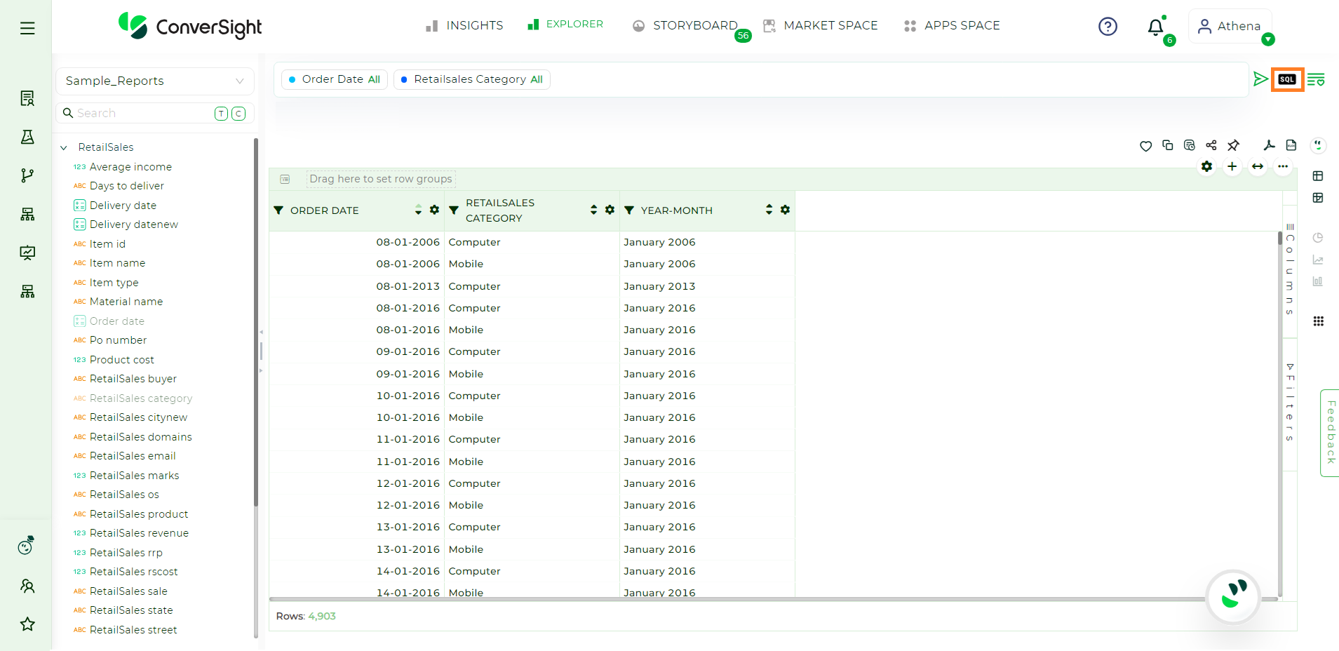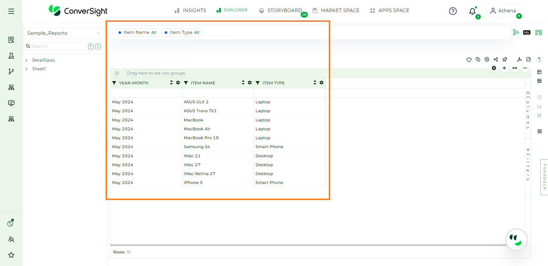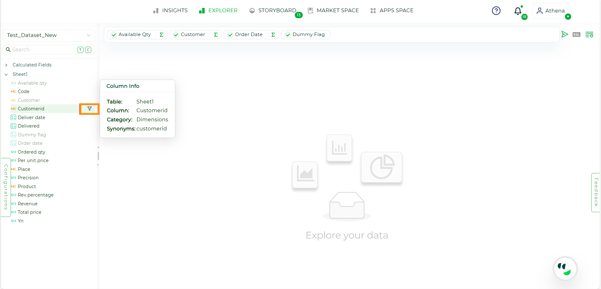 The Explorer tab within ConverSight represents an advanced form of dynamic report creation, designed to simplify data exploration and analysis for users with varying levels of expertise. Reports provide a structured approach to understanding data insights, allowing users to select specific datasets and columns and they also have the option to add customized filters. This approach grants users direct access to their own data, facilitating a deeper understanding.