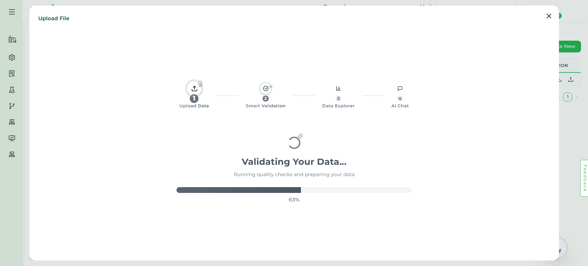 AI Chat: Query the validated dataset via AI Chat to get insights, quick reports, and interactive exploration.