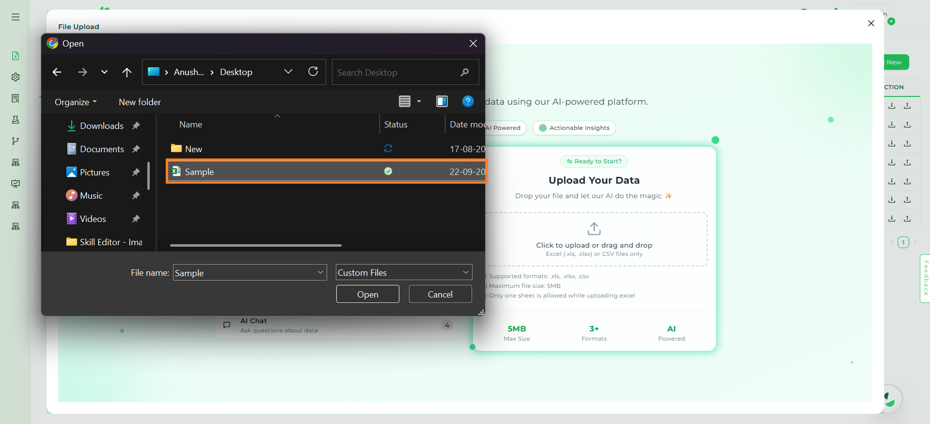 Until now, Excel uploads often required manual data preparation. With Quick Insights, users can directly upload, validate, and confirm datasets, making the process more efficient, self-service, and reliable.