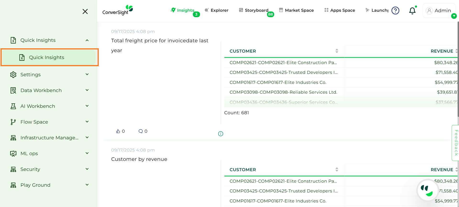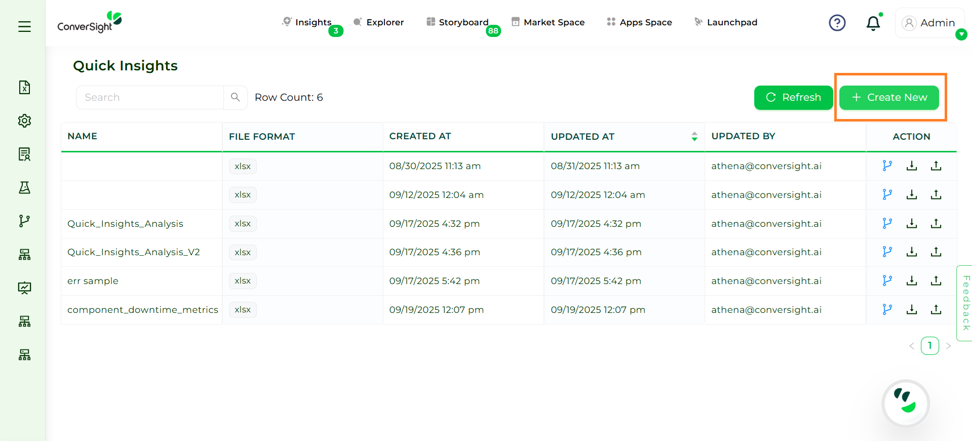 Quick Insights is an enhanced file upload that allows users to seamlessly upload, validate, and manage Excel files within the ConverSight platform. It ensures that data is structured correctly, errors are detected early, and validated datasets are ready for reporting and analysis.