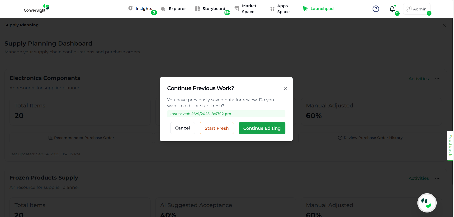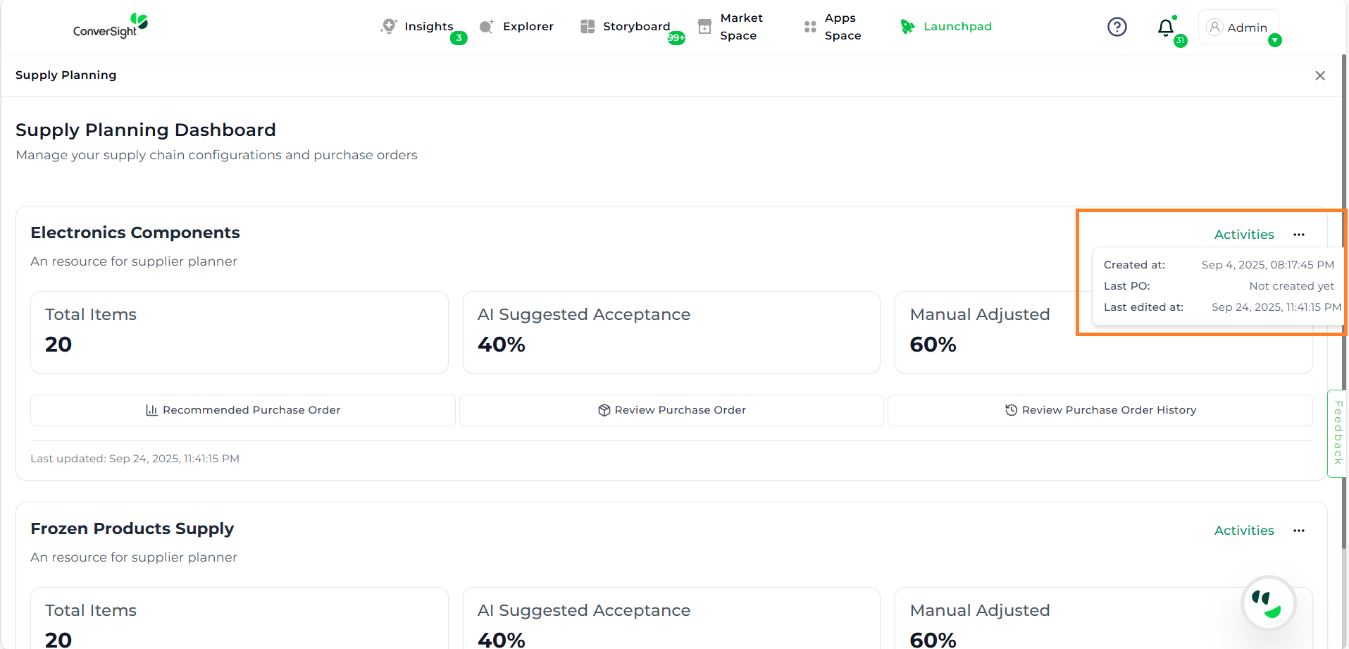 The Supply Planning module is designed to help supply chain managers and planners maintain optimal stock levels, prevent shortages, and manage purchase orders efficiently. It combines AI-powered recommendations with manual flexibility, ensuring that businesses can make proactive and informed decisions.