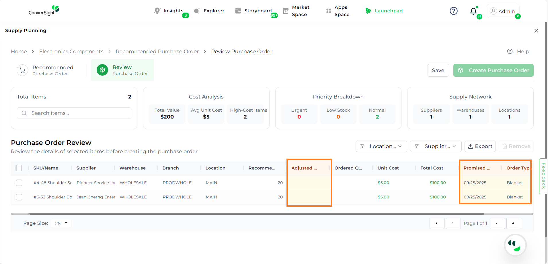 Adjust Quantities – Modify the suggested order quantity if needed.