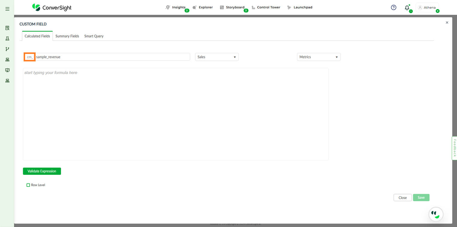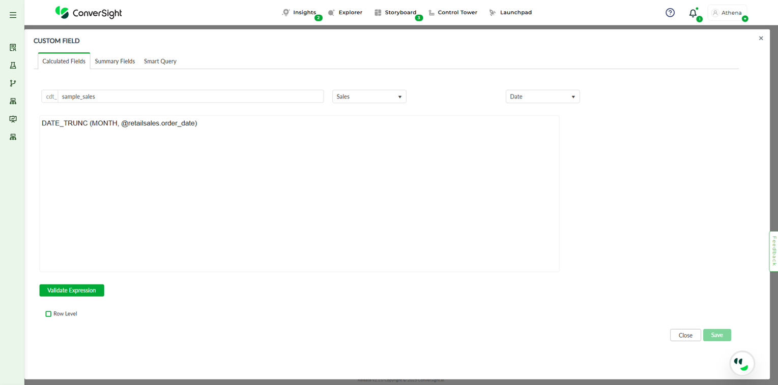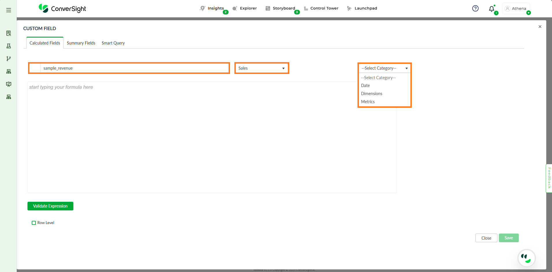 Custom Fields are created by applying conditions and executing operations on pre-existing data fields. The general syntax for creating Calculated Fields is