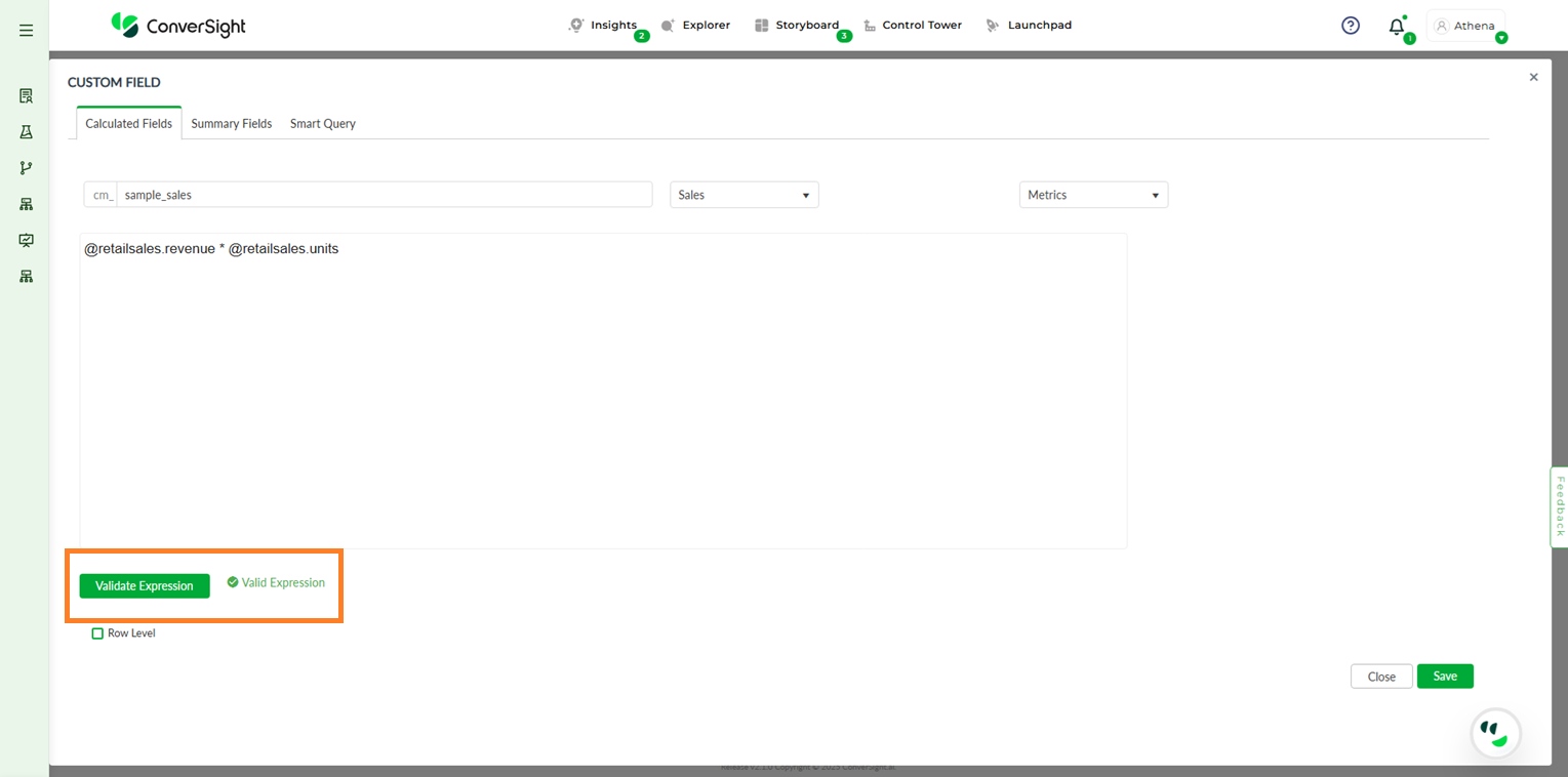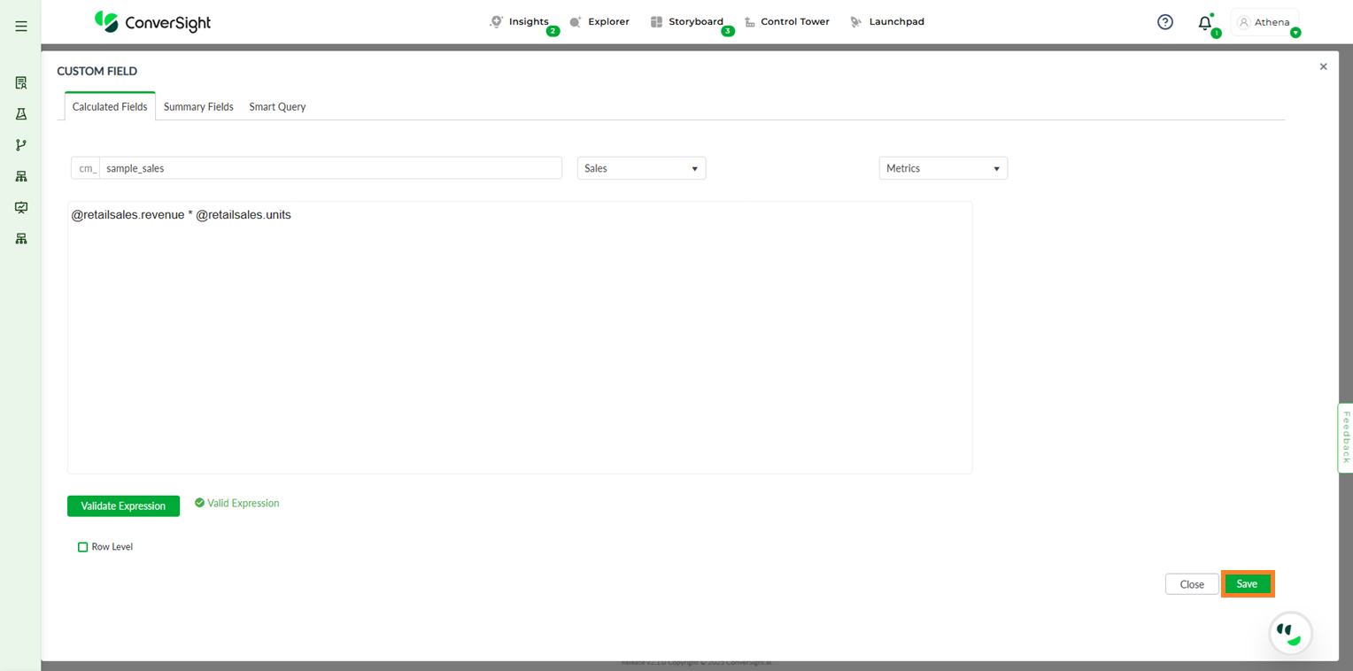 Step 8: After validating your expression, you can save your Calculated Fields by clicking on the Save button.