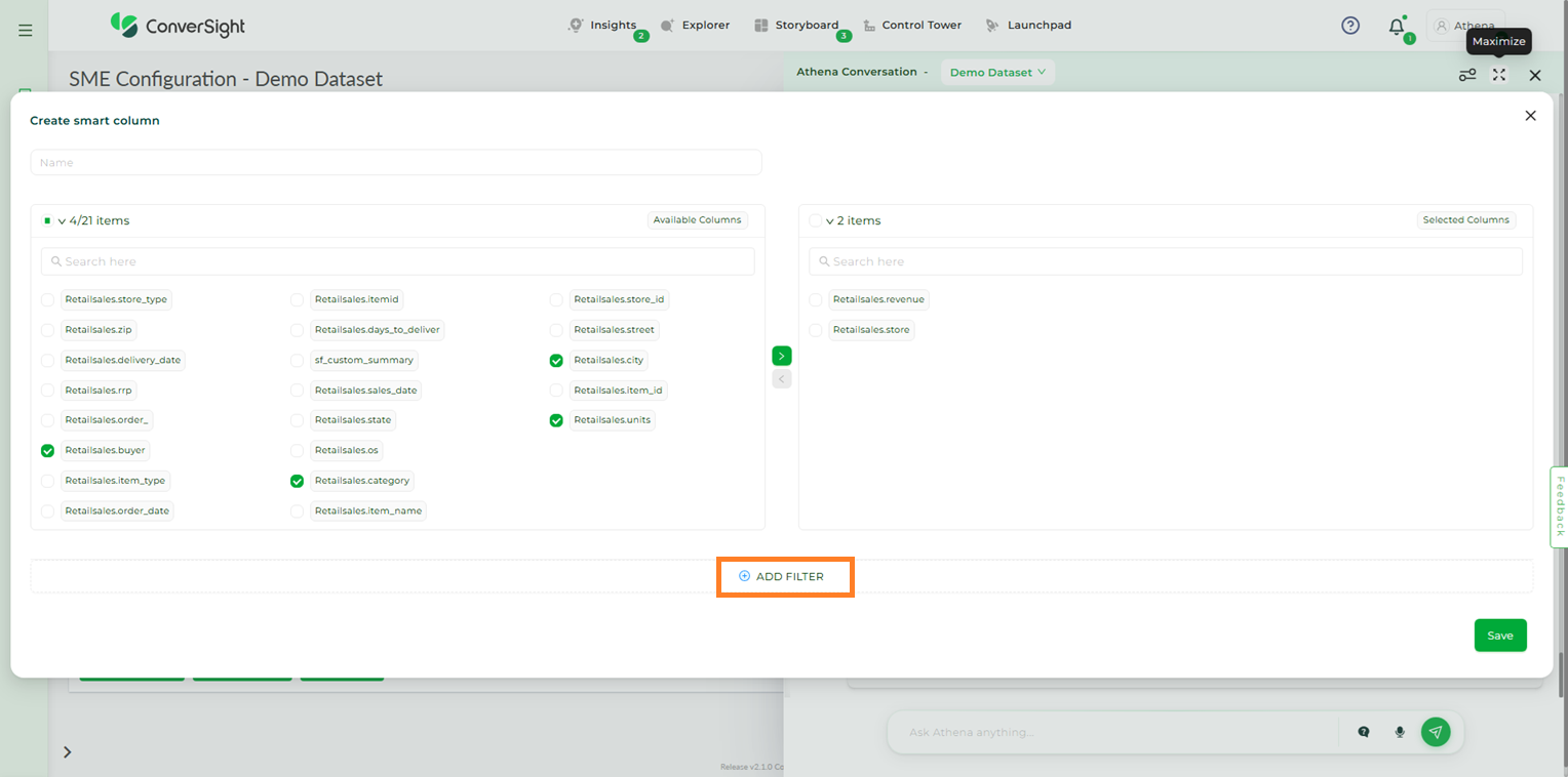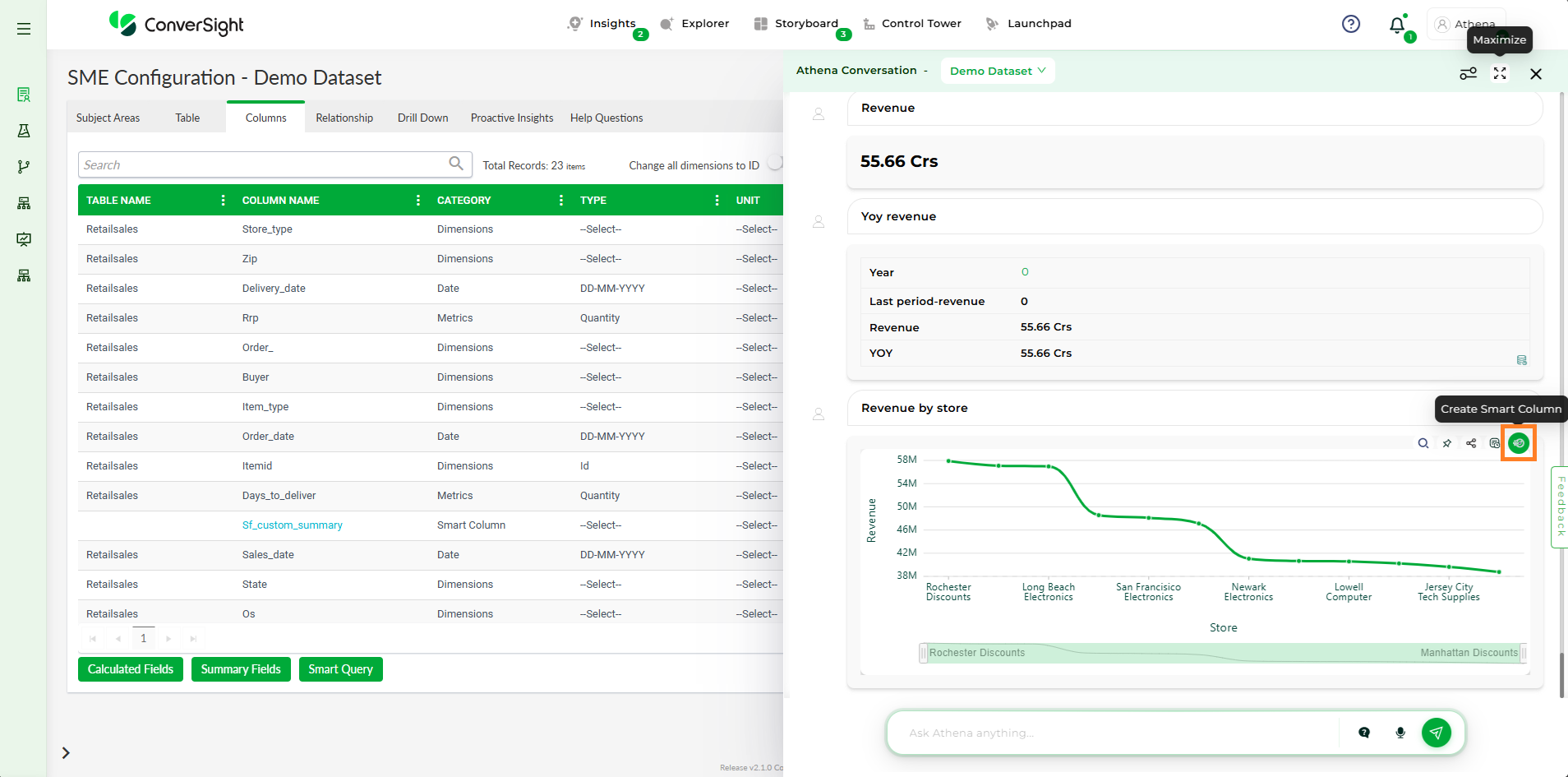 Step 1: To create a Smart Column in Athena , click on the Create Smart Column icon.