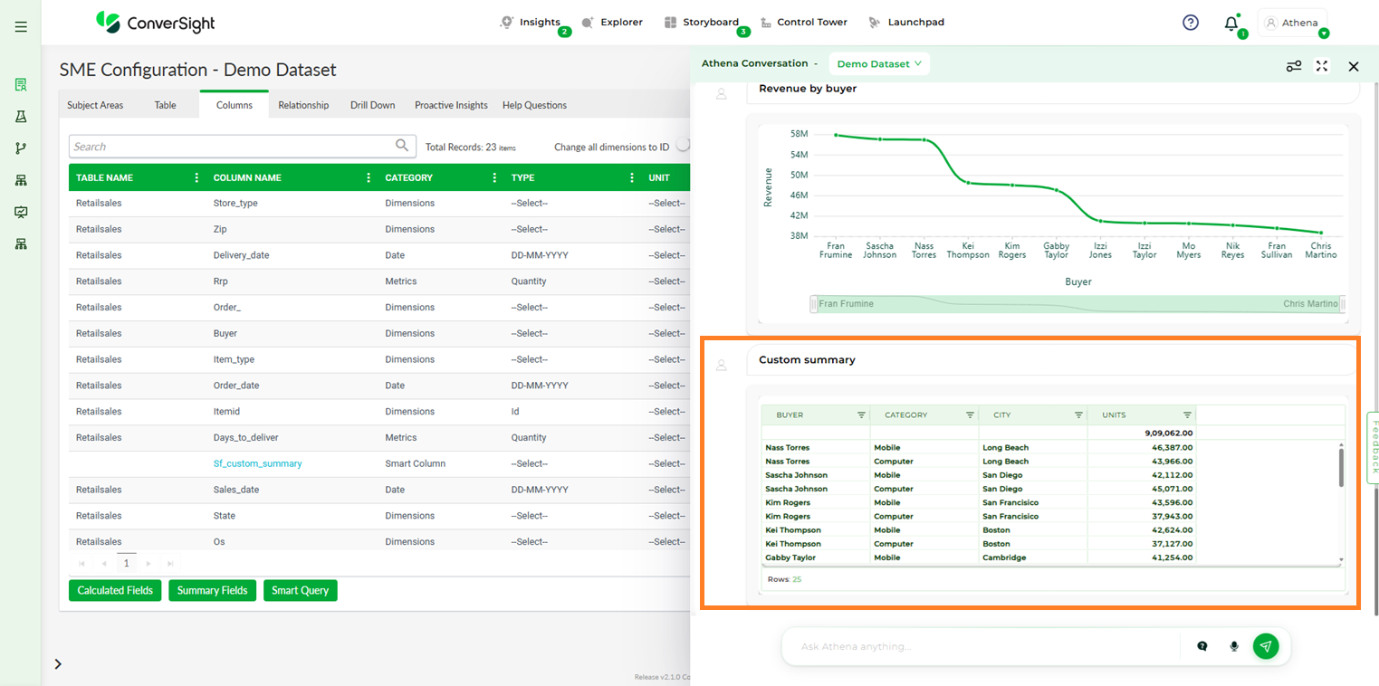 Step 14: To view the created Summary Fields, the user can click on Athena and search for Summary Fields name. This will retrieve all the columns that were selected while creating the Summary Fields.